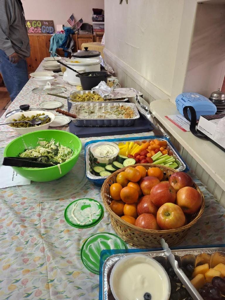 On Tuesday, April 14th, was the Neighbors Feeding Neighbors event at the Methodist Church. This event has turned into a community effort in a variety of ways. To start with, the team that plans the meal knows how to cook! The meal on the 14th was a turkey dinner with turkey, gravy, stuffing, mashed potatoes, squash, and green bean casserole as well as a veggie platter, fruit platter and a bowl of fresh fruit.