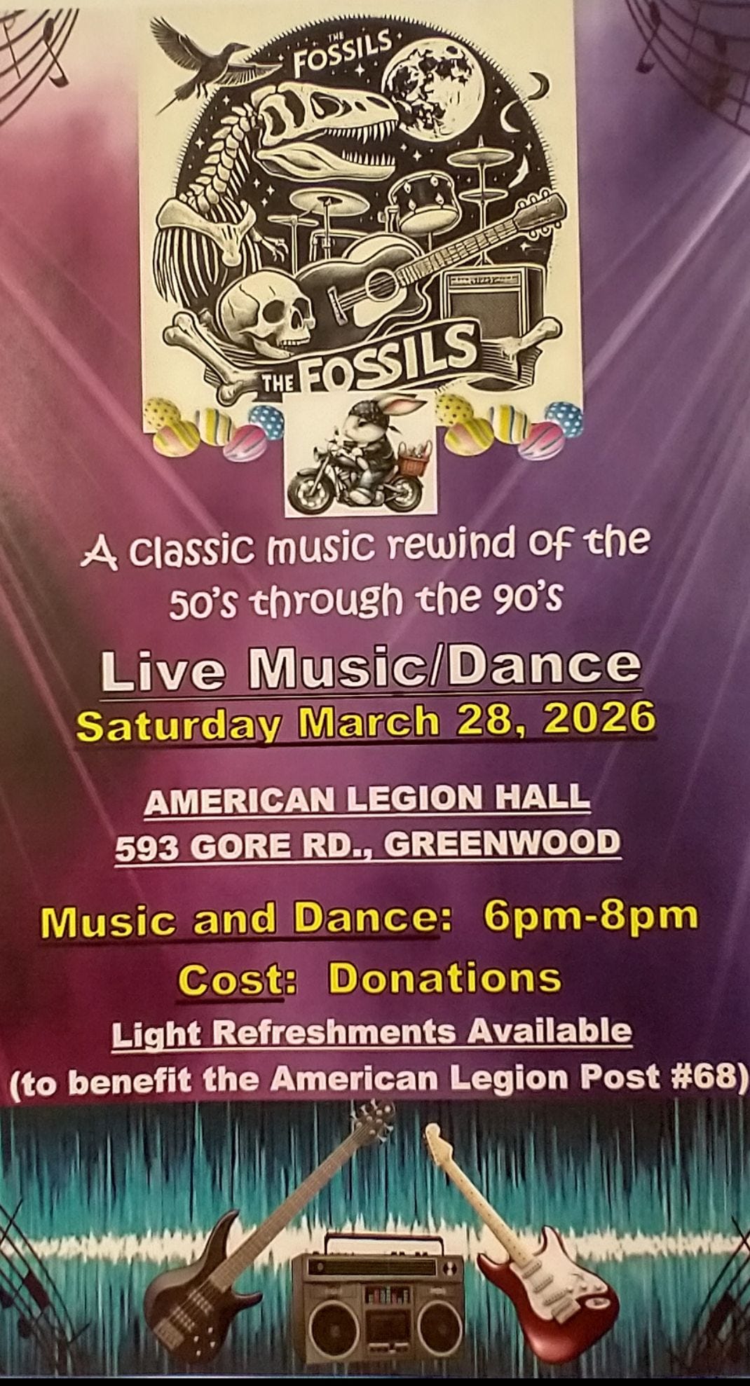 Mark your calendars for March 28th when the Fossils will be performing at the Locke Mills Legion again. Details will follow next week.