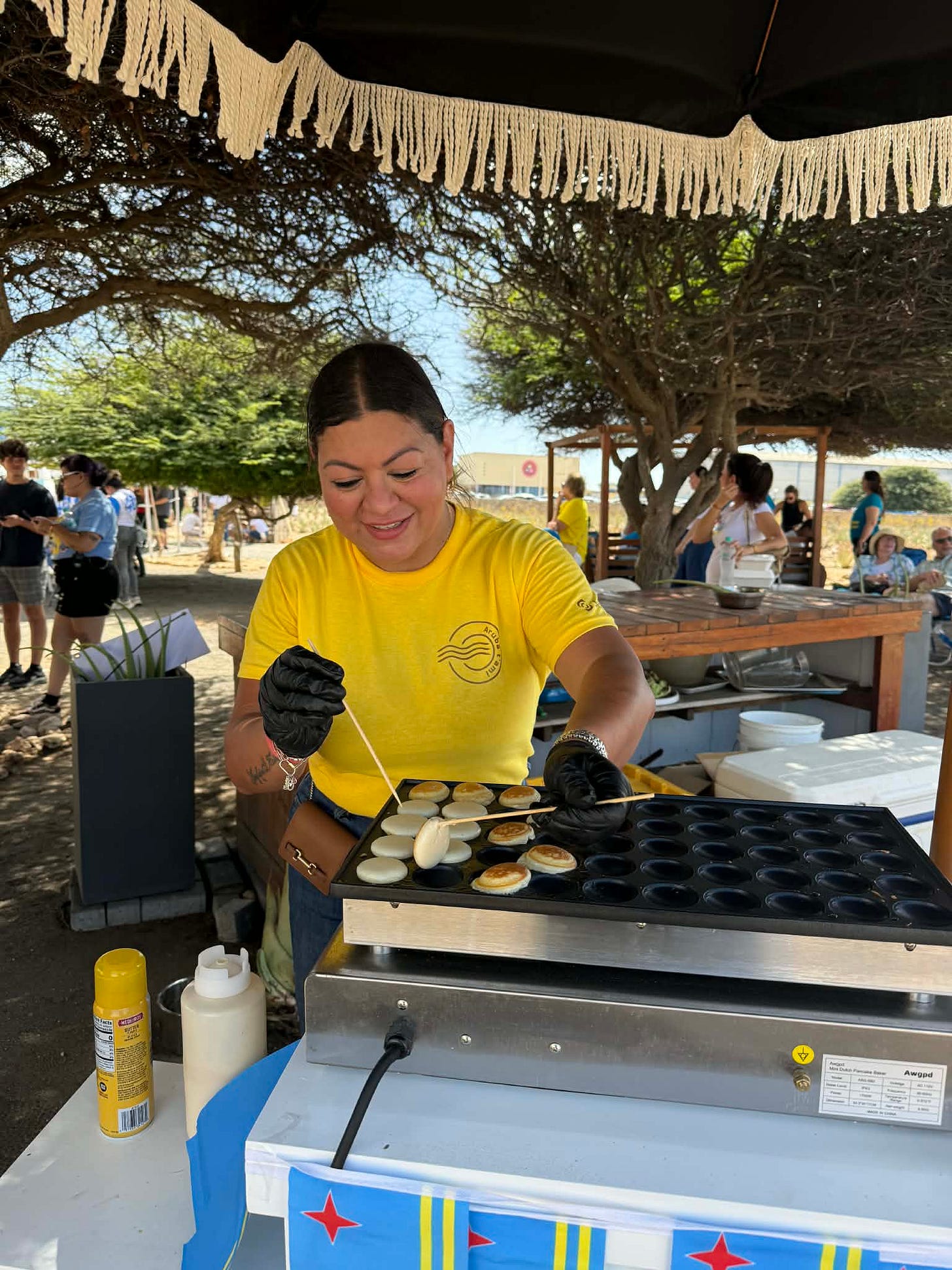 On our last full day there, we went to the Aruba Aloe Factory, where there was a big sale. The store there was packed, and there were festivities outside—play area for children, a stage for music, and lots of food! We finally got to taste a pastechi, which is a hand pie, and filled with cheese, or different seasoned meat. Ours were with beef, and they were delicious! We also tried some Dutch pancakes—tiny ones, with many choices of toppings.